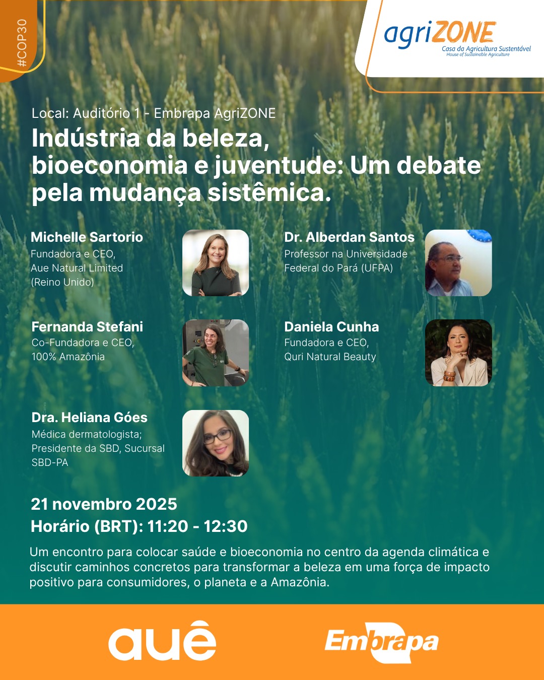 O Prof. Dr. Alberdan Silva Santos (PPGQ/UFPA), no dia 21/11/2025, com início às 11h20, estará participando do painel de debate intitulado “Indústria da Beleza, Bioeconomia e Juventude: Um debate intergeracional pela mudança sistemática”, que faz parte da programação da 30ª Conferência das Nações Unidas sobre Mudança do Clima (COP30) realizada em Belém (PA).